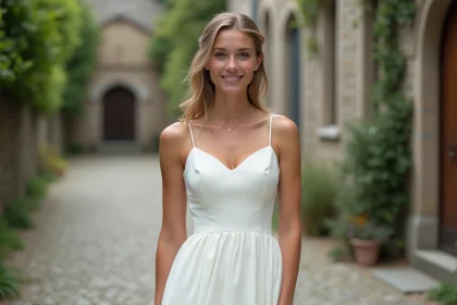 Un bouquet de pivoines fuchsia, hésitant au creux de ses mains, et soudain, tout vacille. L’ivoire de la robe s’interroge, la salle retient son…