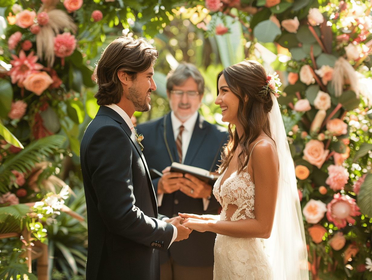 L’officiant de la cérémonie joue aussi un rôle clé. Non seulement il guide les mariés et veille au bon déroulement de l’événement, mais il contribue aussi à personnaliser la cérémonie en partageant des anecdotes et en mettant en lumière les traits uniques du couple. L’officiant peut être un proche qui connaît bien les mariés ou un professionnel qui saura les accompagner dans la création d’un instant à la fois solennel et profondément personnel.