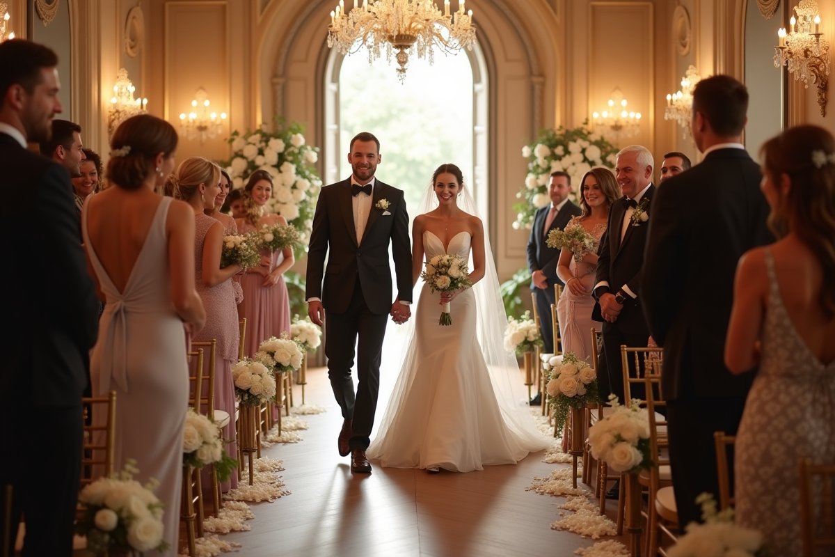 Lors d’un mariage en France, l’ordre d’entrée du cortège de mariage reflète des traditions bien établies. Le marié, accompagné de sa mère, ouvre la marche. Cette entrée, empreinte de symbolisme, établit le début de la cérémonie et marque un moment clé pour les invités.